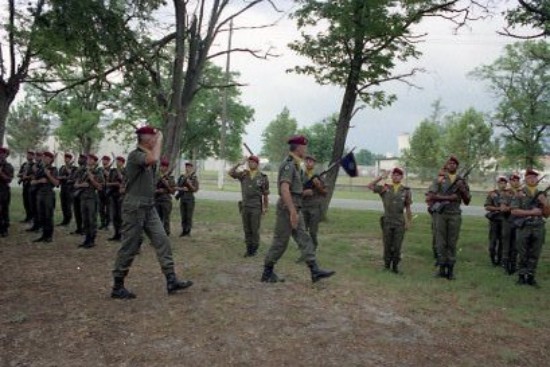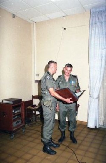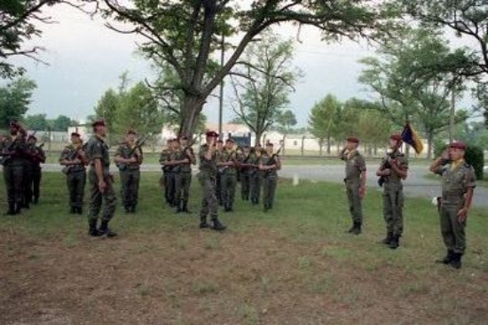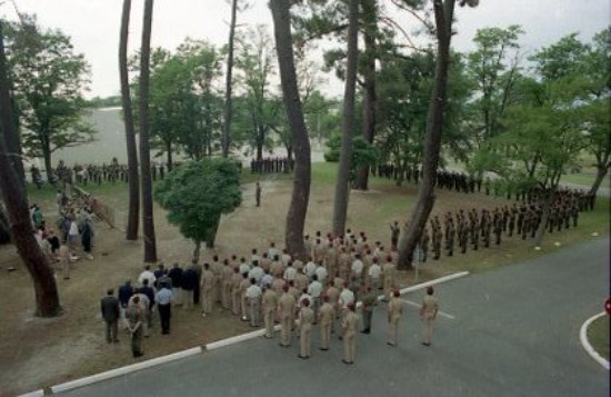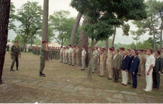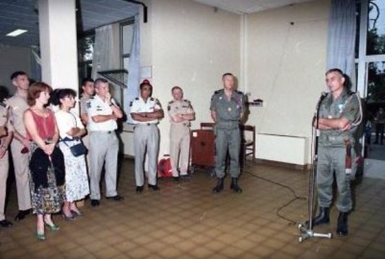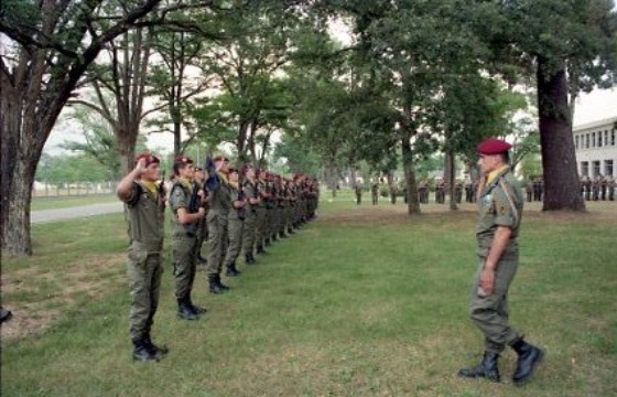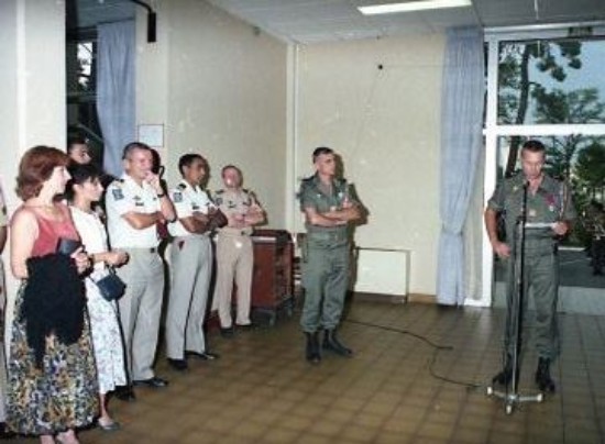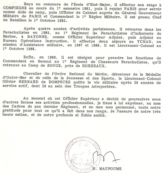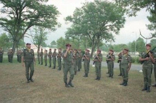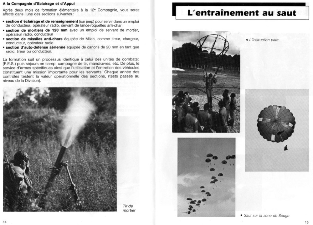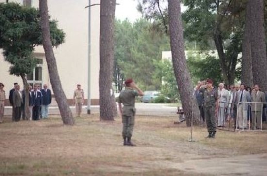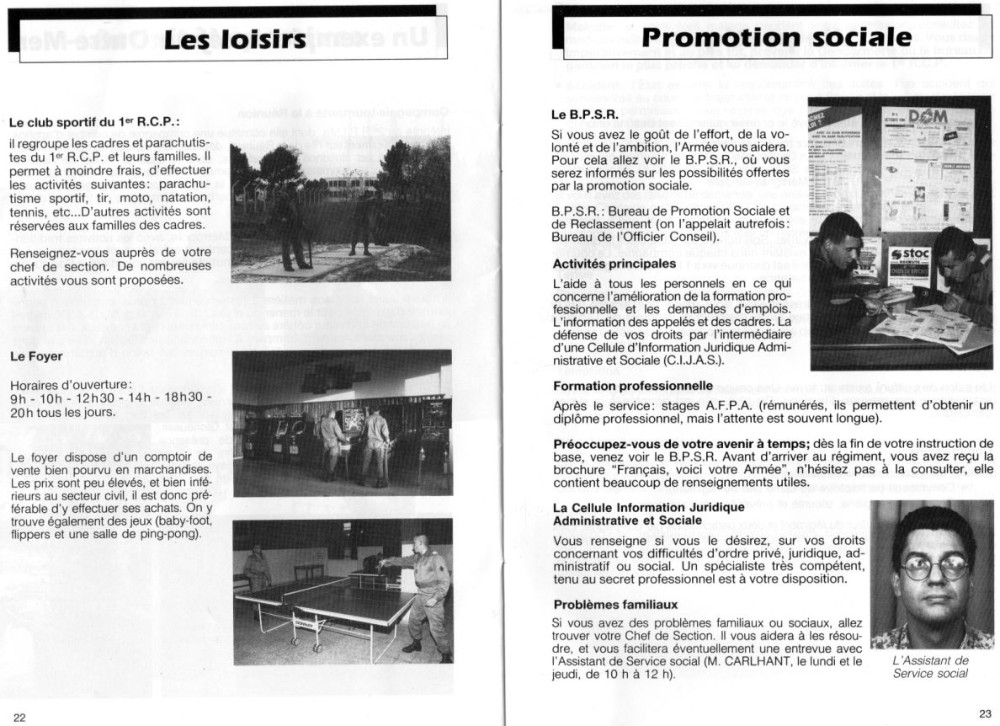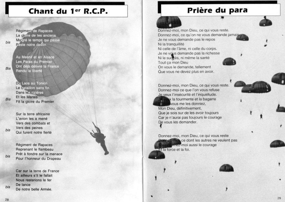 ► LE CAMP de SOUGE ( 1984-1999 ) Le 1° R.C.P. et le CAMP d' IDRON ( Décembre 1962 - Juillet 1984 ) Nous avons largement témoigné de cette époque des Appelés Volontaires Parachutistes du temps de paix .Une sorte de Désert des Tartares émaillé d'exercices GUEPARD et de Compagnies Tournantes en renforcement des unités stationnées outre mer . Les anciens sont profondément attachés au cadre de vie qu'offrait le CAMP d' IDRON avec ses chalets de Section au sein d' un ensemble spécifique à chaque Compagnie . Au dela des questions sentimentales la situation du CAMP d' IDRON ,totalement enclavé , cerné par la construction de lotissements chaque jour plus envahissants,devenait intenable .La circulation automobile rendait dangereux les itinéraires de footing, le stand de tir était condamné pour cause de nuisance sonore , la motorisation annoncée du Régiment ( VAB) n' était guère réalisable dans ce type de cantonnement ...En outre le casernement d'un autre âge était vraiment parvenu au terme de l' acceptable . Un ensemble moderne était vacant dans la région de BORDEAUX il a bien fallu se résoudre au départ . C' est le Colonel JC CARDINAL qui fermera IDRON et ouvrira l'ère SOUGE. Le 1°R.C.P. et le CAMP de SOUGE (Juillet 1984- Juillet 1999) Cette époque fut celle des Appelés Volontaires Parachutistes au sein de ce que l'on a pu appeler "l'âge d' or de la Force d' Action Rapide -FAR- "L' attentat du DRAKKAR - 23 Octobre 1983 - marque la transition entre les époques CAMP d' IDRON et CAMP de SOUGE . Le CAMP d' IDRON avait vu le départ du Régiment des derniers anciens d' INDOCHINE, le CAMP de SOUGE verra le départ des derniers anciens d' ALGERIE . C' est le lieutenant Colonel Philippe LECLERE qui fermera SOUGE mais n' aura pas le plaisir d'inaugurer PAMIERS garnison du 9° R.C.P. les années se sont écoulées depuis le départ du 1° RCP du CAMP de SOUGE, il nous est apparu nécessaire de témoigner des quinze années passées au CAMP de SOUGE, d'autant que nous avons largement évoqué les années IDRON/GER .Nous savons aussi que les anciens du CAMP de SOUGE attendent que ce nouveau chapitre de la vie du 1° RCP soit ouvert . cliquez sur les photos pour les agrandir " Ces deux vues montrent le CAMP de SOUGE dans son ensemble .Le 1° RCP n'y sera pas seul Il partagera l' espace avec un Centre mobilisateur (CM 57 ) et un Détachement de l' ALAT " " Ce plan tiré du livret d' accueil permettra aux visiteurs du site de mieux interpréter les photos aériennes " GUIDE d' ACCUEIL du 1° R.C.P. au CAMP de SOUGE ( édition de 1991 ) Le livret d' accueil, ici nommé Guide d' accueil ,que reçoit chaque Chasseur Parachutiste lors de son incorporation offre un panorama assez complet du quotidien de l' A.V.P. du 1° R.C.P. au Camp de SOUGE . " Photo de couverture du guide d' accueil " Toutes les photos de la période du Camp de SOUGE sont dues au talent de Michel BERNATETS ( voir au sujet de cet ancien AVP du 1° RCP : Mémoire d' ancien ) " Il est créé un INSIGNE spécial destiné à rappeler d'une façon permanente les actions d' éclat de certains régiments et unités formant corps cités à l' ordre de l' armée. Cet INSIGNE sera constitué par une fourragère aux couleurs de la croix de guerre .(circulaire de création en date du 21 avril 1916) La fourragère en terme de symbolique et de terminologie militaire est un INSIGNE et non pas une distinction honorifique .Ce type d' erreur est hélas fréquent dans les documents officiels " " Cette organisation du commandement du 1° RCP suggère une subordination verticale ,ce qui est faux .Le chef de corps exerce son commandement dans deux directions d'une part sur les commandants d'unités, d' autre part sur l' état major et les bureaux spécialisés , ces derniers n' ayant pas autorité sur les commandants d'unité ainsi que ce croquis pourrait le laissez entendre ." " militaire , soldat , parachutiste ....l' emploi de ces mots relève de la sémantique ou de l'usage du moment dans l'unité concernée .On pourrait penser que parachutiste est un sous ensemble de soldat qui lui mème est un sous ensemble de militaire .Je vois beaucoup de soldats mais peu de guerriers ( Ainsi parlait ZARATOUSTRA) ajoute un sous ensemble à soldat Dans cet exposé sur le Formation élémentaire toutes armes , on voit mal ce qui distingue le soldat du militaire ." " SER est interprèté comme Section d' Éclairage et de "Reconnaissance" ou de Renseignement " selon les pages du guide "