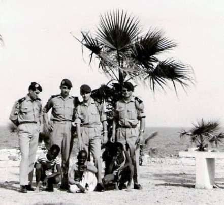DANS LA SOUTE D'UN NORD 2501 lors du vol ZAKOUMA-FORT LAMY (décembre 1966). Ile de Gorée en décembre 1966, S/C ESTIVAN, Sergent BERTOLETTI, Sergent SOURT, Sergent BLONDEL.