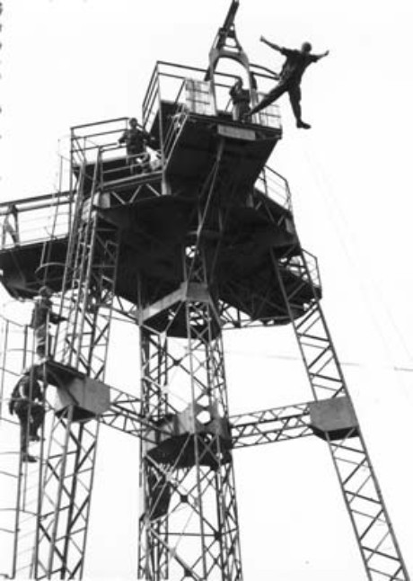 Oui l'entraînement parachutiste passe par cela. il faut, la première fois, beaucoup de courage et de confiance pour obéir au sous-officier qui vous hurle dans les oreilles.