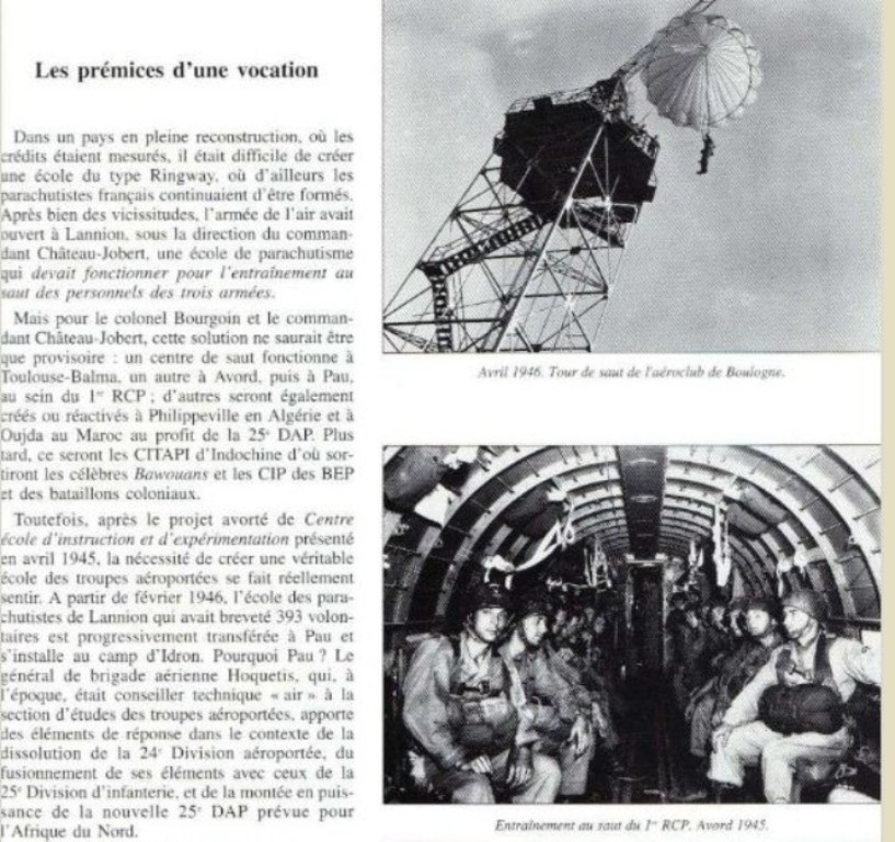 Entrée du CSTAP ( centre entrainement au saut ) de Pau / Idron avant 1947. école des Troupes Aéroportées de PAU / IDRON en 1947 L'école vue du ciel Vérifications des équipements à l'ETAP, années 1963 ou 64