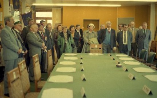 " Discours du Général R.de BIRE dans la Salle d' Honneur du 1° R.C.P.Cette pièce conçue comme salle de réunion pour en particulier les Grands Rapports ne se prètait absolument pas à servir de Salle d' Honneur En effet pratiquement aucun des impératifs de conservation des objets anciens n' étaient rèunis "