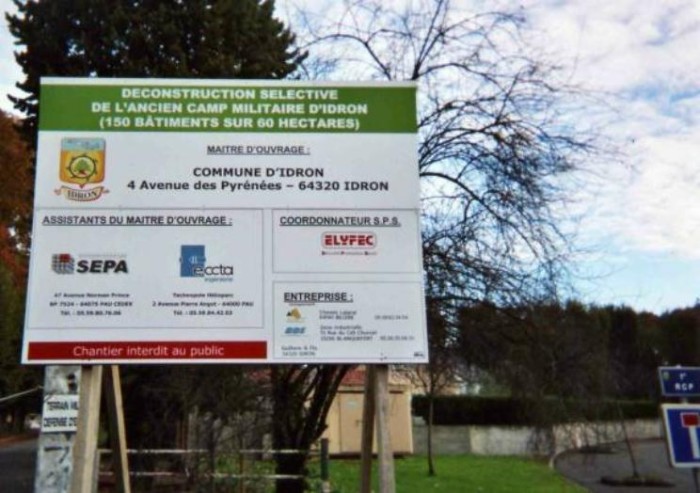 Voici l' acte officiel de décès du CAMP d' IDRON . Sur la droite en tout petit, sur le panneau routier en bleu, la flamme du souvenir est allumée ! C'est bien peu, l'avenir fera peut-être autre chose en souvenir du camp militaire et de son Histoire, sa grande Histoire. Ce sujet a été mis en ligne en 2006, aujourd'hui en 2019 je reviens sur cette page pour informer que la mairie d'Idron, proprietaire des terrains de l'ex camp militaire, n'a pas trouvé mieux que de débaptiser le camp pour lui donner comme nom " Domaine Paul Ducournau " Je n'en dirai pas plus, mais 44 années d'histoire Militaire Parachutiste ne meritaient-elles pas mieux ?