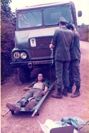 " Appelez moi DOCTEUR !!. Chaque fois que la durée de l' arret le permet l' Adjudant Chef WATSKY met en oeuvre un Poste de Soins .Infirmier Major du 1° R.C.P. il a une longue et riche expérience dans la pratique de son métier .L'exercice démontrera s'il en était besoin le bien fondé de sa présence auprès d'un jeune médecin ,qu'il est en mesure de suppléer efficacement"