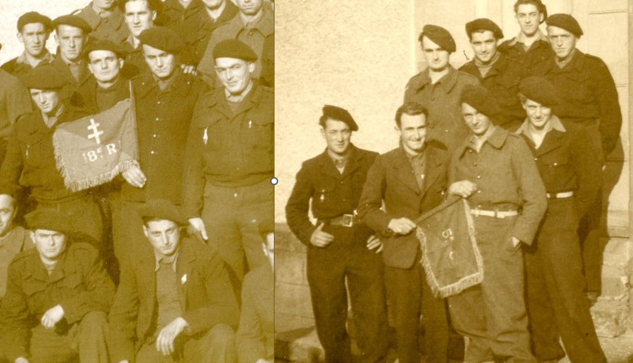 Le 18° Régiment de Chasseurs Parachutistes a été créé en Juillet 1956 dans le cadre d'une énième réorganisation des Troupes Aéroportées après la Seconde Guerre Mondiale . La réorganisation avait cette fois ci pour objectif de répondre aux besoins du maintien de l' ordre en ALGÉRIE par la création de divisions d'intervention .. Le 18° R.C.P. ne fut pas créé "ex nihilo " mais à partir du II° Bataillon du 18° Régiment d' Infanterie Parachutiste de Choc (RIPC).Conservant leur Drapeau et initialement leurs Fanions les parachutistes eurent le sentiment plutôt que d'une création , tout simplement d'un changement d' appellation consécutif à la transformation de leur Régiment . "Fanion du II° Bataillon du 18° Régiment d'Infanterie Parachutiste de Choc (RIPC )Au format Bataillon frangé de cannetille d'or ses deux faces sont sur fond Rouge identifiant une seconde unité .A l' avers l'insigne du 18 brodé au naturel entre les inscriptions "18° RIPC" " 2° Bataillon " brodées au fil d'or en arc de cercle Au revers le Brevet de Parachutiste au naturel . Organisation d'ensemble du 18° R.I.P.C de 1952 à 1956. ![]() Notre étude des Fanions du 18 s'était limitée aux Fanions du 18° Régiment de Chasseurs Parachutistes. C'est à peine si nous avions évoqué le 18° Régiment d'Infanterie Parachutiste de Choc au travers de son Fanion du II° Bataillon. Du 18° Régiment d'Infanterie au 18° RCP il y a un long chemin. Dissous en 1940. Armée d'Armistice 1940 / 1942. Dissolution 1943. Régiment de BEARN 1944 / 1946. 18° R.I reconstitué 1945 / 1946 . 18° Bataillon d'Infanterie 1946. 18° B.I.AP 1946. 18° Bataillon d'Infanterie Parachutiste 1947 / 1950. 18° Bataillon Parachutiste de Choc 1950 / 1951. 18° R.I.P.C 1952 / 1956. 18° R.C.P 1956 ! ! Fin février 2024 nous avons découvert le Fanion de la C.A du 18° R.I.P.C. Le 1° Bataillon était stationné à Pau, cependant que II° Bataillon était à Bayonne. (1952) Tout le Régiment fut réuni à Pau à la caserne Bernadotte et au Camp d'Idron en 1953. En 1956 le 18° R.I.P.C devient le 18° Régiment de Chasseurs Parachutiste. Le Fanion au format Compagnie est du modèle dit tranché. Il est symétrique aux couleurs BLEU du 1° Bataillon, parties flottantes et VERT de l'Unité d'Appui (ou d'accompagnement) A la Hampe. Son ornementation est réduite à sa plus simple expression, se bornant à souligner l'identification de l'Unité. ![]() Il y a eu tellement de changements d'appellation pour des Unités à existence éphémère que le temps nécessaire pour assoir la Symbolique n'a pas été trouvé. Ces deux clichés montrent le 18 faisant parti de la Nouvelle Armée Française et des Troupes d'occupation (Allemagne et Italie) Ces deux Fanions sont précurseurs de celui de la compagnie d'Appui °1 du 18° R.I.P.C. Consulter sur le site, la page Historique du 18° R.C.P pour voir les Fanions du 18° antérieurs à son appartenance aux Troupes Aéroportées. A PAU sont formées les unités suivantes : Escadron ,Compagnie d' Appui ,Centre d' Instruction avec des unités du 18°RIPC En ALGÉRIE le II° Bataillon du 18° R.I.P.C. :forme la C.C.S. et les 1° ,2°,3°,4° Compagnies de Combat de Voltige par simple changement d' appellation des CB 2,C.A 2 et 5°, 6° ,7° Compagnies . Ainsi le 18° R.C.P. est il l' héritier direct du 18°RIPC et plus particulièrement du II° Bataillon du 18°RIPC d'où proviennent en unités constituées l' essentiel des compagnies. Le 5 Aout 1956 le Lieutenant Colonel de BEAUGRENIER remet solennellement aux compagnies leurs Fanions lors d'une prise d' armes suivie d'un défilé à OUED ZENATI. : Ordre de Bataille au 1° Juillet 1956 : CCS:Capitaine DEJEAN,1° Cie:Capitaine LUBY,2° Cie: Capitaine BACQUE,3° Cie:Capitaine SEJALON ,4° Cie :Lt BOULANGER C.A.:Cne JUTEAU ,E.R. :Lt PETERMANN