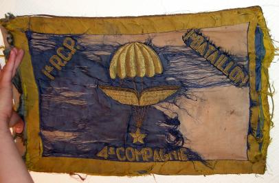 .La 1° Compagnie était commandée par le Capitaine BRECHIGNAC héros du II / 1° RCP à DIEN BIEN PHU .Il s' agit ici de son Fanion , celui de la 1° Compagnie spécialisée en Appuis, Transmissions ,Destruction , et Path Finders .