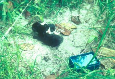 | Dans les hautes herbes proches de notre batiment de Section nous avons découverts des chatons nouveaux nés .Hélas , non sevrés et abandonnés par leur mère ils n' ont pas vécu longtemps . | | | | |