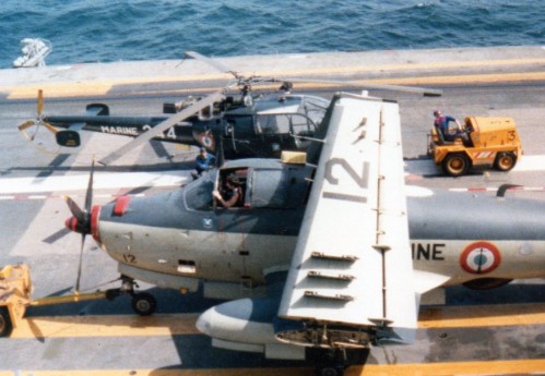 "Avion de type Breguet 1050 ALIZE destiné aux patrouilles maritimes .Au parking , en vérification technique et en situation d' envol "
