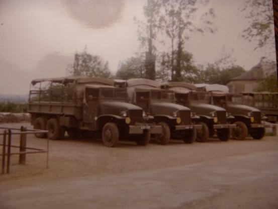 Une équipe du Roulage au repos à Issor le 10 juillet 1980 (manoeuvre Montori) - Cliché de droite, au premier plan un camion " Marmon " au deuxieme plan un " GMC "
