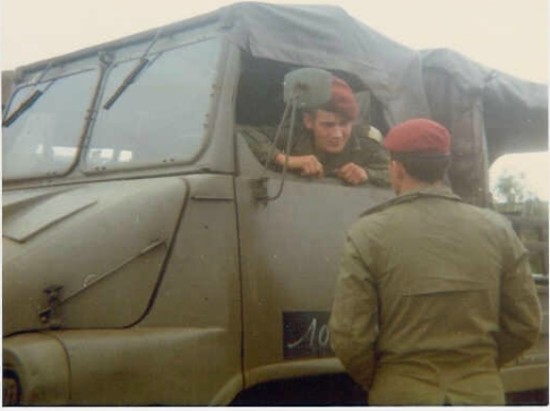 Défilé lors d'une Passation le 24 juillet 1980. - Cliché de droite, un trio derrière le bâtiment de la CCS fin 1979, début 1980.