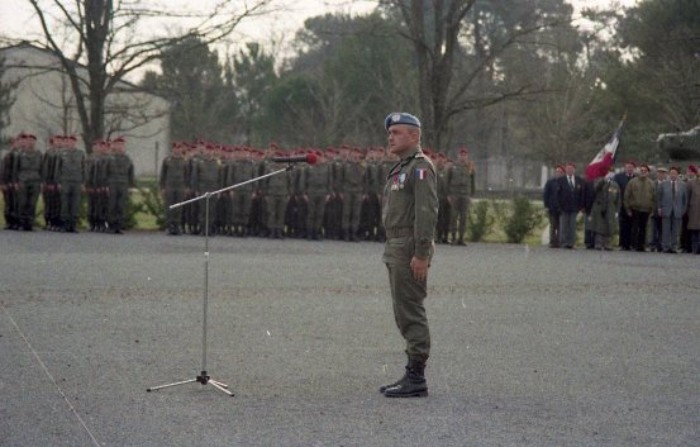 Allocution du Commandant du BFONU CAMBODGE et du Général Com RM de BORDEAUX A droite le Commandant PERRUCHOT (Ancien du 1°RCP )Chef de Cabinet du Général Com 11°DP .