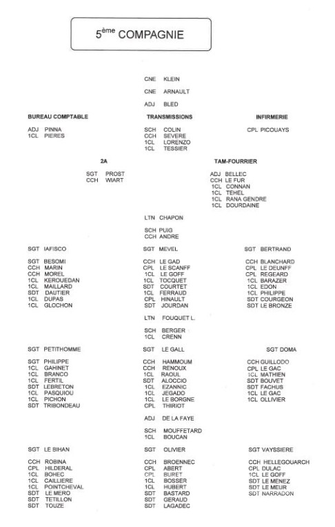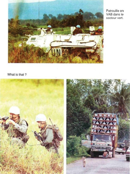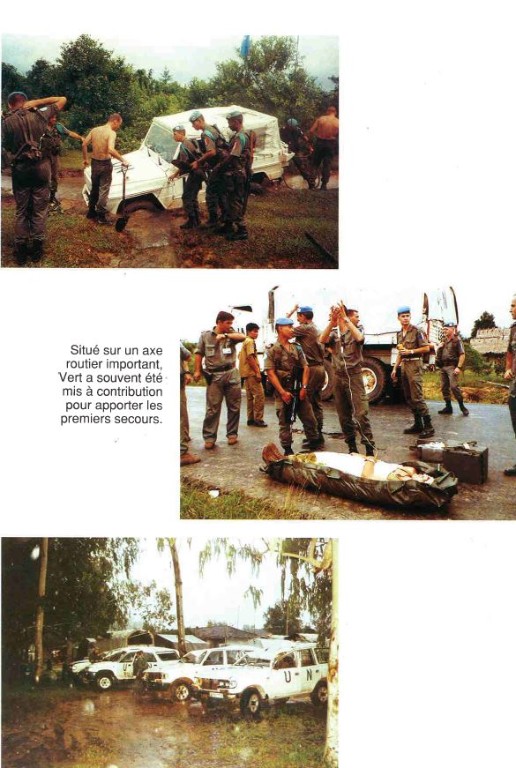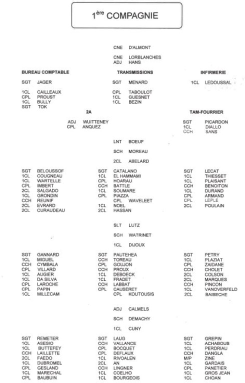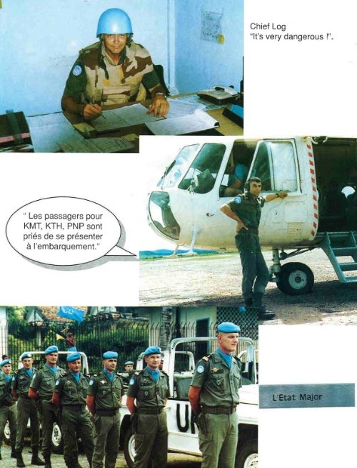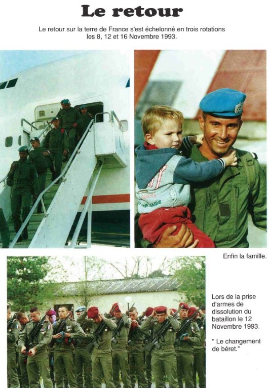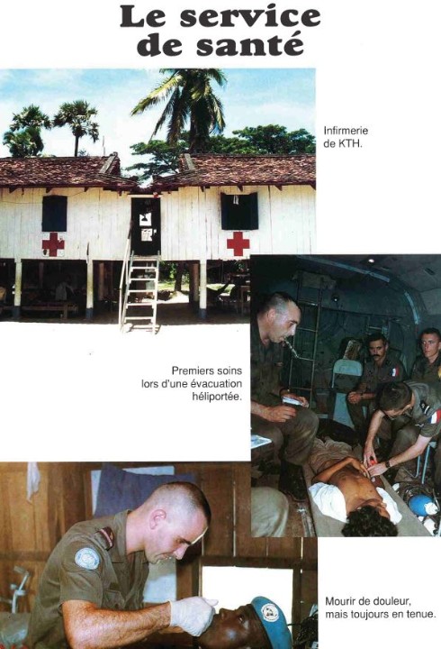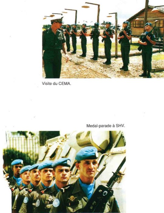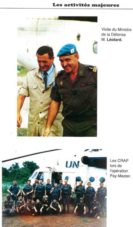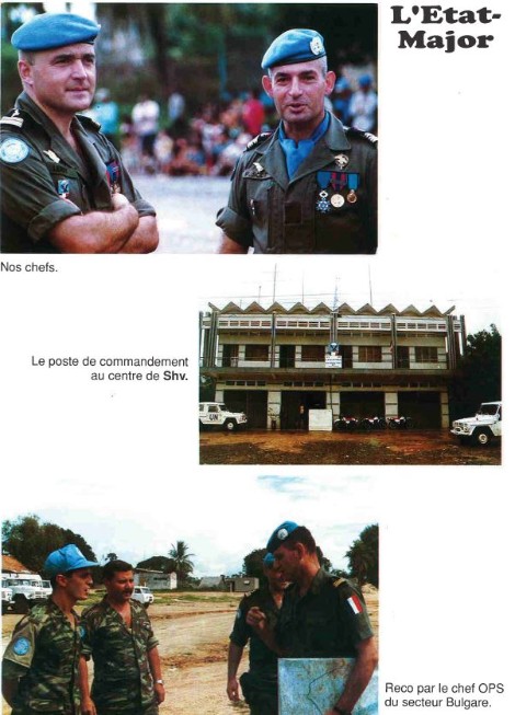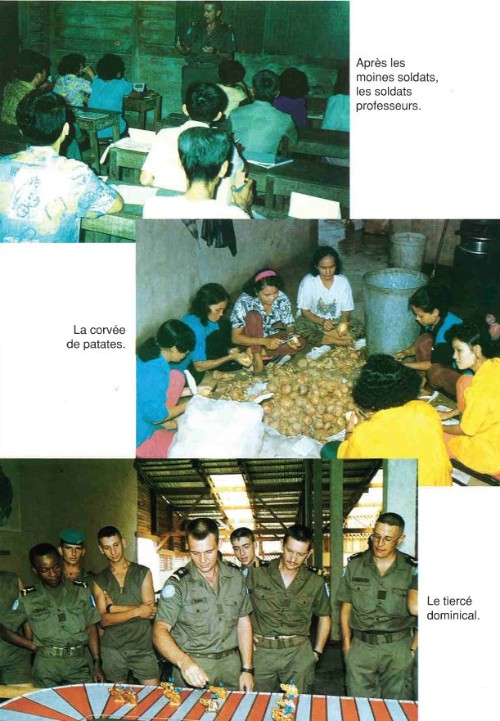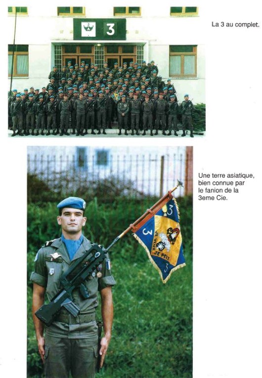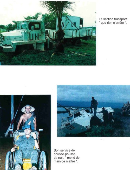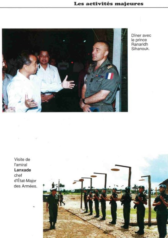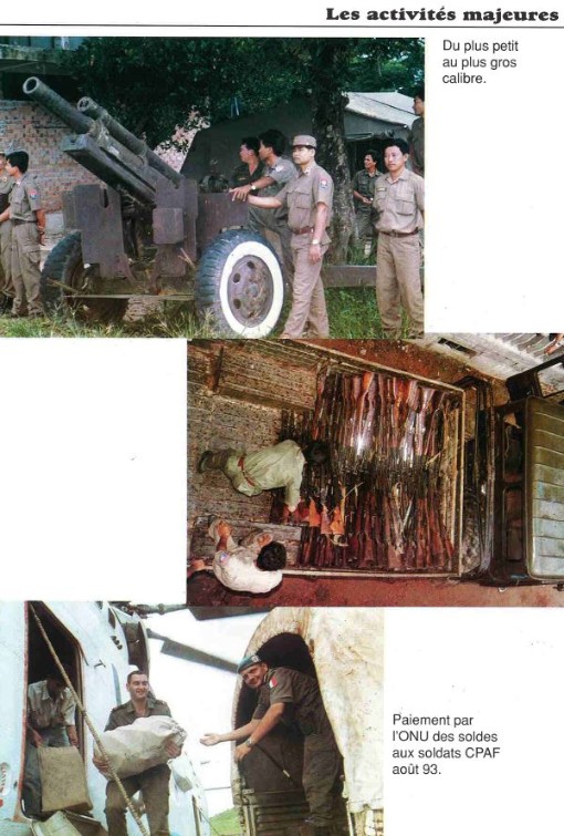 Bataillon d'Infanterie de l'ONU au Cambodge ( juin à novembre 1993 ) ► En juin 1993 le Chef de Corps du 1° R.C.P. prend le Commandement du B.F. O.N.U. au CAMBODGE . " Le 1°RCP fournit les 2° et 3° Compagnies " " Le 6° RPIMA fournit les 4° et 1° Compagnies " " Le 41° R.I. - ancien Régiment de la Reine - fournit la 5° Compagnie " " Le 17° RGP fournit la compagnie du Génie " " Le 14° RPCS fournit en majeure partie le soutien " Au retour du BF ONU une plaquette richement illustrée a été éditée .(1° trimestre 1994) A défaut de Journal de Marche cette plaquette présentera au lecteur le BF ONU au Cambodge. → SENS DE LECTURE des documents