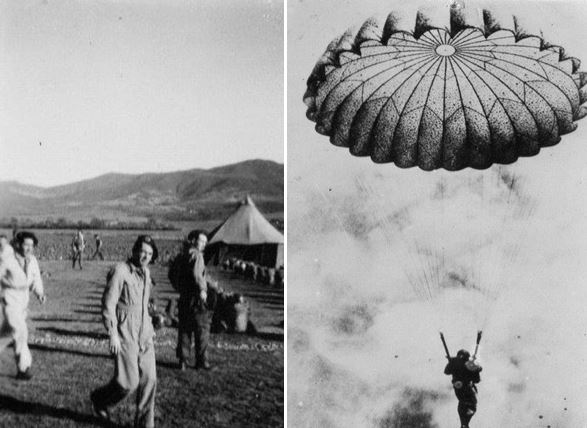 " Marcel PRIGENT a effectué une période d'instruction au CES N° 1 pour l' obtention du Brevet de Parachutiste Prémilitaire La zone d'instruction spécialisée est organisée sur la colline boisée d' eucalyptus et de chênes verts surplombant PHILIPPEVILLE .Un élève suspendu à un cadre fait une sortie à partir d'une plateforme Visiblement l'instruction est faite en vue de sauter du JUNKER La position est proche de celle de l' Armée Allemande ." " Groupe d' élèves portant un casque d' entrainement dit modèle 1945 et réputé obtenu par modification du casque de motocycliste. On retrouve ce type de casque au CETAP d' IDRON Ils sont revêtus de tenues US et semble t il de chaussures également US .Un instructeur surveille le bon déroulement de la fiche : éviter d' être trainé ." " 8 avril 1953 Les sticks de parachutistes prémilitaires s' équipent pour le premier saut .Au fond PHILIPPEVILLE inscrit sur le toit du hangar " " Réintégration des parachutes après le saut .A gauche Pierre PRIGENT avec un casque US à droite Marcel PRIGENT avec le casque d' entrainement pour son premier saut ,au centre en civil son frère PIERRE futur commando de l' air " " En 1954 Marcel PRIGENT est au Peloton d' Elèves Gradés Il est en compagnie de son père Pierre au centre de la photo du haut .Photo du bas , de part et d' autre d'un personnage en chapeau ,le père et le fils .Deux légionnaires encadrent le groupe .Un groupe de 4 photos prises lors de manœuvres à la frontière ALGERO MAROCAINE , du coté d' OUJDA ou la 3°compagnie montre la présence Française en Afrique du Nord à un moment ou l' abandon de l' INDOCHINE se profile à l'horizon .Notez le montage des tentes avec les rigoles pour évacuer l' eau en cas de pluie ..Le campement de la 3° semble établi au milieu de nulle part !!"