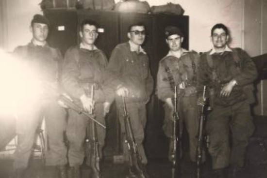 ►Alain SOLER a servi à la 2° Compagnie du 1° RCP comme Appelé Volontaire Parachutiste du contingent 1965 2/C Une nouvelle loi de 1950 fixait à 18 mois la durée du Service Militaire Sur cette durée de trois semestres les fractions de contingents levées s' identifiaient ainsi :1/A 1/B 1/C , 2/A 2/B 2/C . "Prise d' armes au CAMP de GER pour la remise des Fourragères le 5 février 1966 .Les Chasseurs ( c' est ainsi que l'on nommait les appelés volontaires avant qu'ils ne soient brevetés ) ont le soleil de face et sont visiblement gènés .Ils sont équipés de fusils Mas 1949 et revêtus de tenues de saut de parade ( VA1 Vert armée N° 1) du modèle 1947/56 .Stage pour l'obtention du Brevet à l' ETAP .En arrière plan trois Nord 2501 un stick embarque dans celui du milieu " "Le 19 avril 1966 - probablement un week end - les camarades de chambrée font des photos souvenirs dans le Camp de GER ; ils sont revètus des tenues de saut à pression 47/56 usagées ( VA 2). " Une soirée bien arrosée ..dans la chambrée avec les "copains de piaule " avant de partir pour un exercice .Les Parachutistes sont maintenant en dotation de guerre avec des fusilss 1947 modèle 56 ." " Avant le saut sur l' aire d' embarquement de l' ETAP .Ce 25 avril 1965 il avait du pleuvoir comme cela arrive souvent à PAU ...au printemps " Exercice dans la région d' OGEU . Il y avait dans la région d' OGEU une zone de saut permettant des parachutages opérationnels .Le bivouac par tentes de binomes parait plutot sympathique (11 avril 1966 ) " En attente d' embarquer dans le nord 2501 .Exercice dans la région de MONT de MARSAN (29 avril 1966 ) Bivouac dans les pins de la Foret Landaise Les rations ont l' air au goût de ces parachutistes "