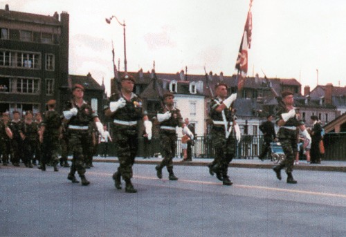 " Ces gros plans de qualité médiocre ne laissent cependant place à aucun doute quant à l'identification des Fanions " En 1961 pour le 1° R.C.P. et la quatrième génération de Chasseurs Parachutistes débute la très longue période ayant pour thème la Guerre Froide ....On a dit lors de la chute du Mur de BERLIN que l' Occident avait gagné la Guerre Froide contre les forces du Pacte de VARSOVIE ...Cette période fut , passé l' enthousiasme pour le tout nouveau "combat commando "et de la D.O.T.( défense opérationnelle du territoire) , un véritable Désert des Tartares !!!