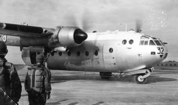 "Le nord 32 se présente pour l'embarquement des parachutistes .Les cadres sautent en casque Gueno . On voit bien les SOA brun / rouge et les 6 sandows du dorsal .Le rédacteur retrouve avec plaisir le Nord 32 à partir duquel il a effectué un SOR 20 secondes sur WRIGHT le 8 Mai 1972 ,deux SOR 11 secondes (PA) et 31 secondes ( tests tours ) le 31 aout 1973 et encore deux SOR 40 secondes toujours sur WRIGHT le 1° Juin 1978 .Ce qui revient à dire qu' en 1978 cet appareil était plus vieux que la plupart des parachutistes ( cadres exceptés ) qu'il embarquait ...belle longévité pour un avion , il faut le dire, à bout de souffle et progressivement remplacé par le Transall C 160 ." " André BERNARD devait être satisfait de son pliage , puisqu'il a photographié son travail avant de refermer le parachute ."