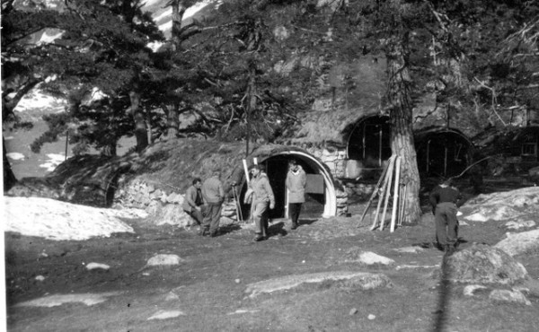 " Le Camp de PONT d' ESPAGNE est construit sur un petit plateau boisé au pied d'un site d' escalade :Le CLOT .Les logement sont peu élevés de forme semi circulaire recouverts de plaques d' herbe et de pierres pour mieux se fondre dans le paysage tout en améliorant l'isolation .Le bois ne manque pas pour entretenir un poele qui chauffe les chalets et sèche les vétements "
