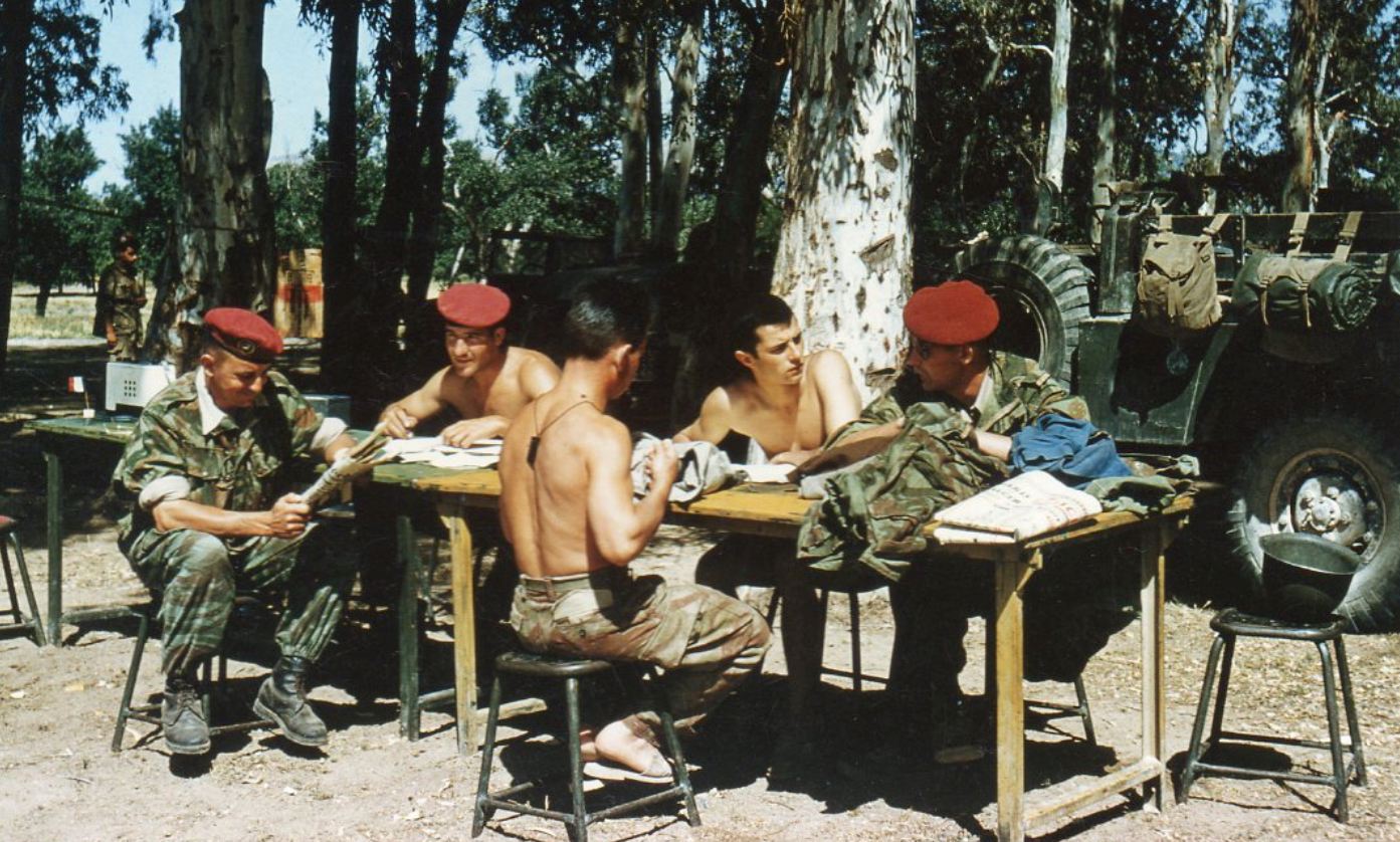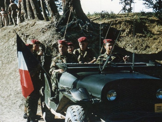 " 20 aout 1958 Combat de FEDJ EL RIH Caporal Chef OTTENWALDER,Sergent Chef Ph BOUDON ( tient le combiné ) DUMAZ (+ 28.01.1959 ) il semble que le sergent chef ph BOUDON porte un vest U.S. au camouflage par taches caractéristique Au sol un rebelle qui vient d' être abattu ) | | "combat du 20 aout 1958 FEDJ EL RIH 2° compagnie Le bilan de l'opération Sergent DIDIOT (àG) Sergent chef Ph BOUDON ( à D) -Chef de la 3° section de BLEU de ROY fier du tableau de chasse ". |