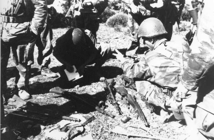 "4 avril 1959 Le Lieutenant GIROLLET regroupe les armes récupérées dans le DJEBEL CHAFEZ"