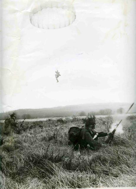 - De ses passages chez les Alpins, le Lieutenant C . Journaux a conservé une bonne technique de descente en " ramasse " avec piolet - Comme il n'y avait pas assez de neige nous n'avons pas utilisé les skis, donc il n'y a eu aucune casse à déplorer et la Compagnie en pleine forme et au grand complet a rejoint ses chalets à Idron. Les Paras sont heureux de ce séjour et envisagent l'avenir avec confiance. Au cours du mois de janvier nous effectuerons un nouveau saut de Manœuvre sur Zone extérieure. - Saut de Manœuvre - - FÉVRIER - Délaissant un peu les autres activités, nous préparons avec ardeur une manœuvre de niveau Brigade ayant pour Thème la projection Outre-Mer et combinant l'emploi des trois Armées. Terre - Air - Mer . Celle ci aura pour nom " STERNE " et se déroulera en Corse. La 3° sera mise en place par Parachutage , d'autres Parachutistes feront un tour sur un Bâtiment de la Royale. La perspective du Saut et de la découverte de la Corse enchante tout le monde. Mais ce Saut il va falloir le mériter ! ! ! Ceux qui croient que nos Compagnies de Combat ressemblaient à des Paras Clubs se trompent lourdement. En pleine nuit le convoi des G.M.C quitte Idron et gagne le parking B.O.M.A.P à Uzein. Bien entendu il fait un frois humide qui nous transperce. Nous formons les Avions , les Faisceaux sont alignés puis nous percevons les Parachutes . Dans la lueur blafarde de quelques lampadaires , règne une ambiance de fourmilière, pourtant tout est réglé de manière précise selon un cérémonial maintes fois répété et que dominent les Commandements des Cadres et les cris des Parachutistes qui se comptent et se recomptent jusqu'au fameux " Terminé Moniteur ". Vérification ! Essayage ! Formez les Faisceaux ! ! ! Premier contact avec le jeu de Pépins, le Dorsal et le Ventral. Puis vient le temps d'une dernière cigarette, d'un dernier pipi.......... Aux Faisceaux ! En commençant par le casque , équipez vous ! ! Comme dans la chanson les sacs sont lourds , les doigts gourds , malhabiles à fixer les courroies des Gaines et des Systèmes d'accrochage ...........Le ballet reprend : Serrez vers l'Avant ! ! On se met en colonne , on fait un pas à droite ou un pas à gauche , on fait face vers le centre , on se réaligne..... et les Moniteurs nous prennent en compte, procédant à des vérifications qui nécessitent de mystérieuses empoignades , des secouages rituels , dont le but est connu des seuls initiés ! ! ! Le Club très fermé des Moniteurs ! ! ! . Malheur à l'étourdi qui n'a pas croisé les cuissardes ou dont la sangle de délestage de Gaine ne suit pas le cheminement prévu ! ! ! Tout ce rituel est garant de leur sécurité et sa stricte observation accaparant toute l'attention des Parachutistes les empêche de trop se concentrer sur leur appréhension. Pendant ce temps toute une Flotte de Nord 2501 s'est approchée dans la pétarade assourdissante des moteurs à pistons. Nous embarquons péniblement dans les Nords rugissants par une petite échelle coté gauche. | | | Le décollage est toujours apocalyptique , enfin à grand peine nous prenons de l'altitude et filons vers la Méditerranée en longeant les Pyrénées. Les portes ont été enlevées il fait un froid de canard . Les Paras serrés les uns contre les autres somnolent ou pensent à leur petite amie ou se demandent tout simplement dans quels ennuis ils sont encore allés se fourrer. Mais tout va bien ............jusqu'à ce que notre Avion ne tombe comme une pierre. Nous sommes au dessus de la Mer et pour des raisons d'ordre tactique nous allons voler , en Formation , au ras des vagues . l'Avion de Noir 4 n'est pas leader mais simple équipier ! ! ! Cela signifie que , aile dans aile , le Pilote va corriger en permanence sa position par rapport au leader. Les estomacs naviguent des Rangers au Casque au gré des trous d'air.........Les teints sont cireux , tous transpirent et cependant grelottent de froid....... La plupart des Paras sont malades ....... certains résistent tant bien que mal . Après un très , très long voyage , en même temps qu'une bouffée d'air chaud aux fortes senteurs de maquis nous parviens , nous recevons les Ordres de préparation au Saut. Là , tout va très vite , après quelques rappels que personne n'écoute , les Largueurs sont contreints de s'écarter pour laisser passer Noir 4 , au paquet ! ! ! dans une charge impossible à endiguer ! ! ! Le Saut devient une sorte de fuite en avant , pour échapper à cette épouvantable approche en Vol tactique et tous se ruent aux portes. | | Dès l'ouverture nous nous rendons compte que Borgo est une Zone de Saut un peu particulière. | | Soudain nous disparaissons dans des bruyères géantes de deux à trois mètres de haut. Le regroupement sera homérique . Nous allons beaucoup Crapahuter , harcelés par les Jeeps ennemies du 1° R.H.P. , nous allons défricher une aire d'héliportage où aucun hélicoptère ne viendra jamais , nous allons dormir à la belle étoile dans une châtaigneraie ..........Estimant que nous sommes fatigués un temps de récupération nous sera accordé. | | Noir 4 au repos , après avoir mis à profit un moment hors Manoeuvre pour littéralement dévaliser un magasin de vente de produits touristiques. Pour cet exercice nous portions des casquettes fourrées où nous avions fixé l'insigne du Régiment. Après nous avons fait un tour en mer sur un Bâtiment de la " Royale " | | Tous les Noirs sont là , par Section , à coté de leurs Faisceaux d'Armes et de sacs attendant l'embarquement sur une petite plage proche de Calvi. La partie " Terrain " de la Manœuvre terminée une prise d'Armes suivie d'un Défilé réunit les participants à Bastia. | | Défilé des Noirs derrière le Capitaine de Warren , le Lieutenant de Badts Chef de Noir 4, au premier rang les Sergent-Chef Verinaud , Geraud , Wojtal , Pierri , le Sergent-Chef Mandon Porte-Fanion. Un superbe rang de Sous-Officiers de toute premi