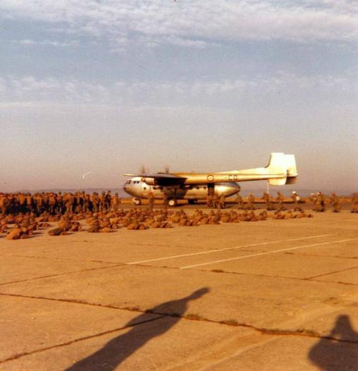 "Les Groupes de Saut de NOIR prêts à embarquer dans le mythique NORD ATLAS aux moteurs rugissants " Aire d' embarquement d' UZEIN .